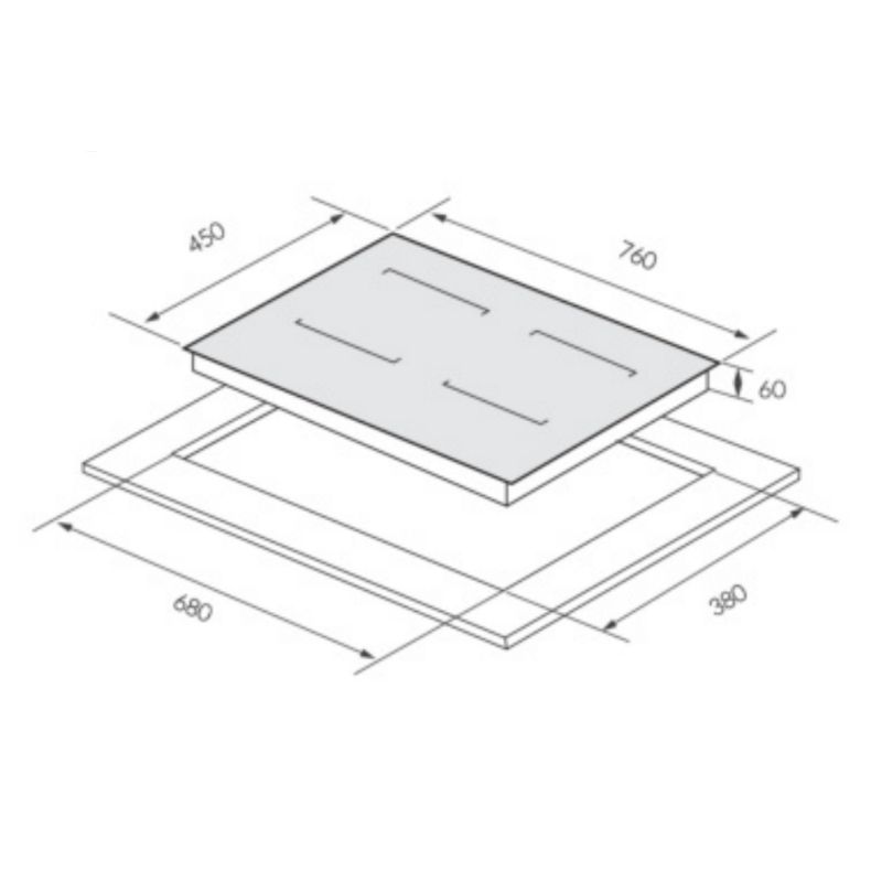 - Kích thước khoét đá: 680R x 380S mm